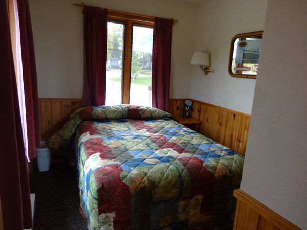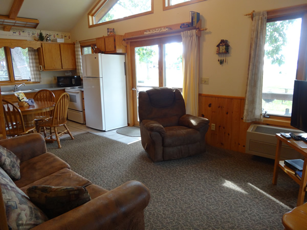 This lakefront, two-bedroom cabin with one bathroom sleeps up to 6 people comfortably. Your cozy vacation cabin offers a fully equipped kitchen with a full-size refrigerator, range, microwave, coffee maker, toaster, and eating utensils. The bright living room is nicely carpeted with a color TV for your enjoyment. A special feature that comes with this cabin is a relaxing whirlpool garden tub. And there’s also a handicap accessible lakeside deck with lawn chairs and table plus a picnic table, fire ring with grill and a charcoal grill.